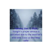 Our next Tuesday evening prayer service is scheduled for Tuesday, Dec. 16, 2025 at 7 p.m. Please join us then!