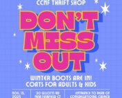 The shop will be open this Saturday, Nov. 15th from 10 a.m. to 1 p.m. Come find your Christmas gifts - many brand new! Winter boots are in! Coats for adults ($10) and kids ($5), [...]