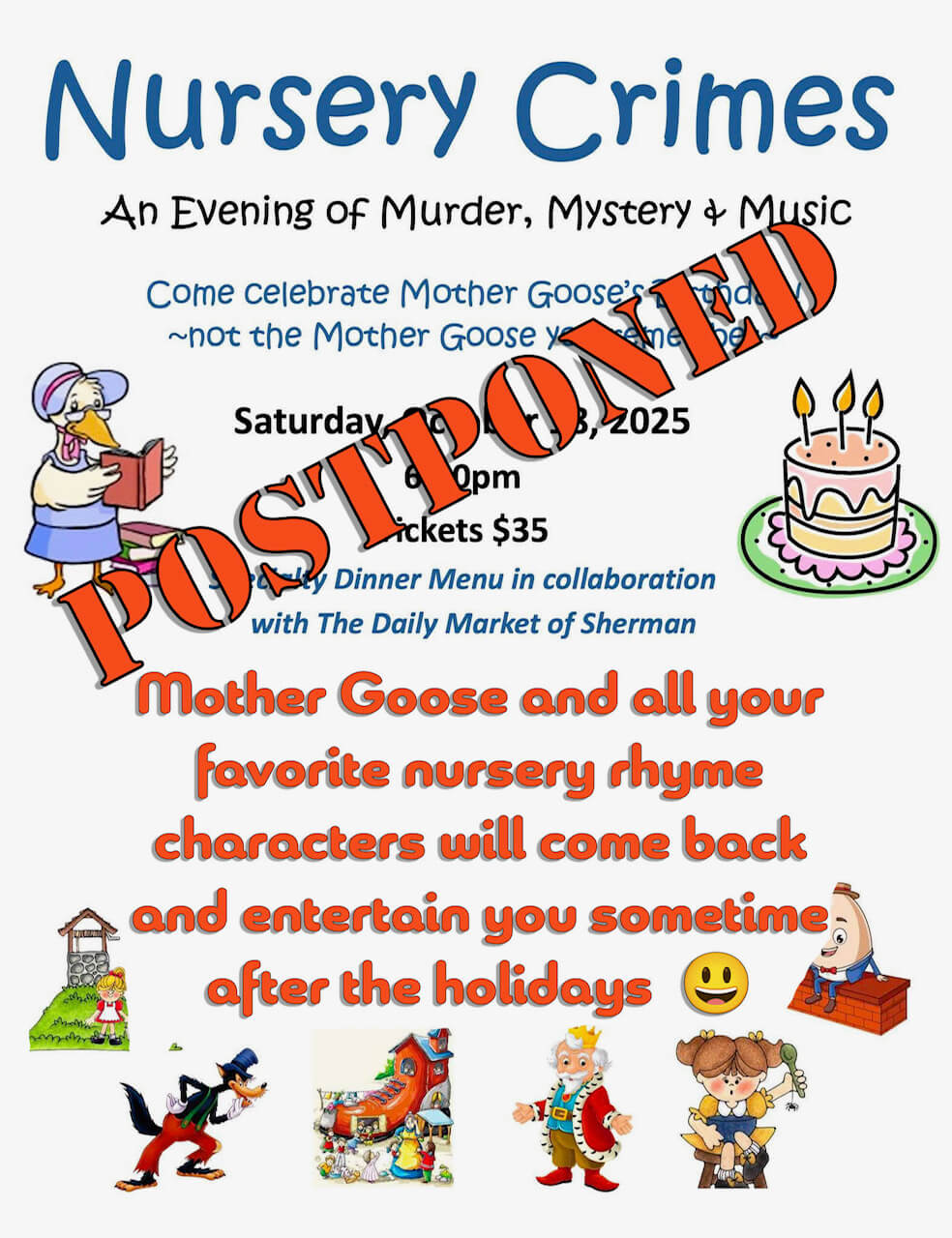 We’ve had to postpone our “Nursery Crimes” until after the holidays. So keep an eye out for a new announcement in 2026!