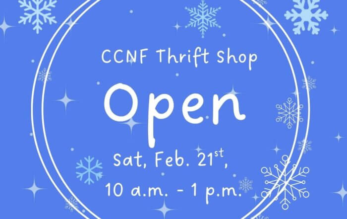 The CCNF Thrift Shop has decided to postpone tomorrow's sale to next Saturday, Feb. 14th, based upon the weather forecast. So, please stay safe and warm tomorrow, and visit us on the 14th from 10 [...]