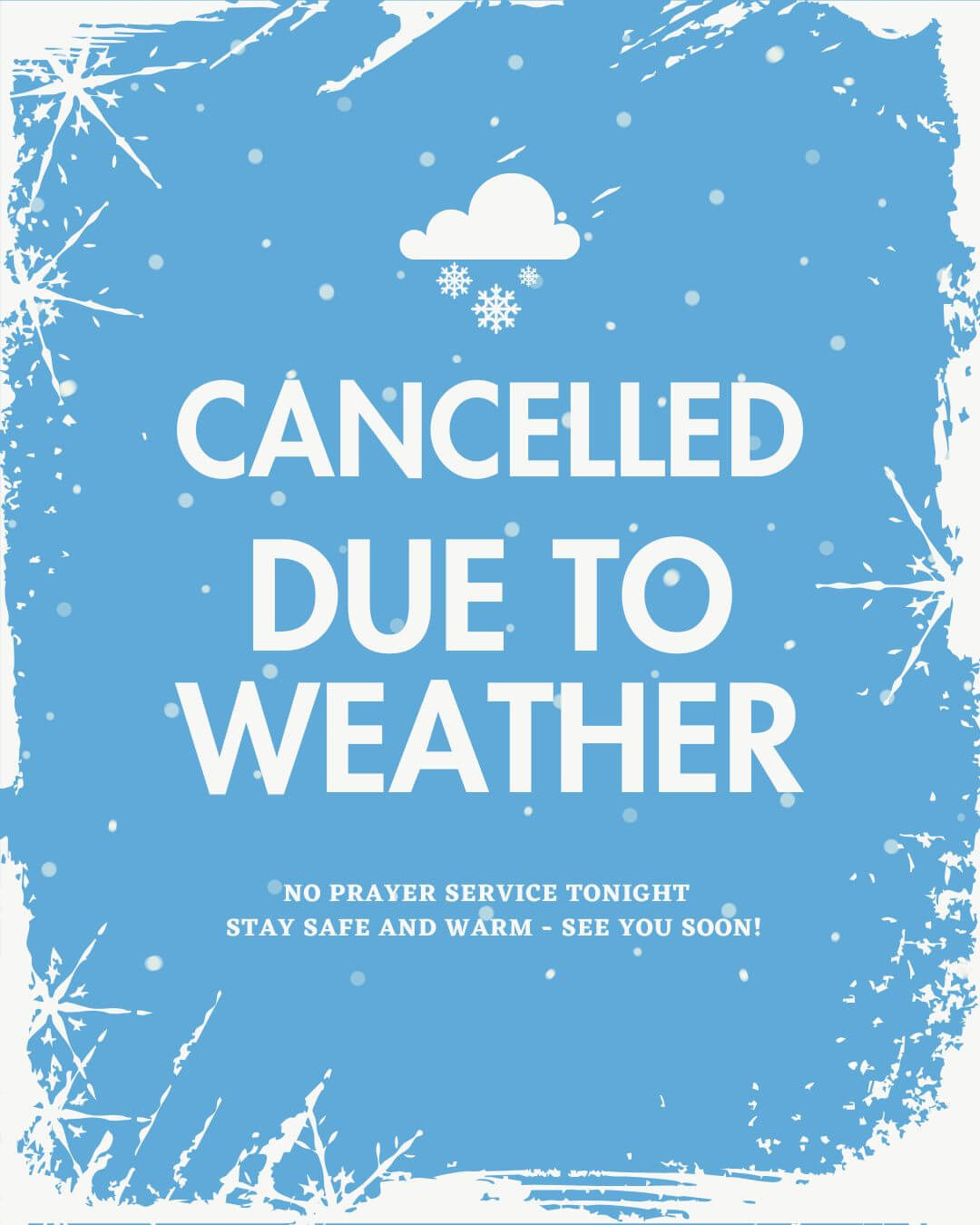 The weather just isn’t cooperating with our plans today, so for everyone’s safety, tonight’s prayer service is cancelled.